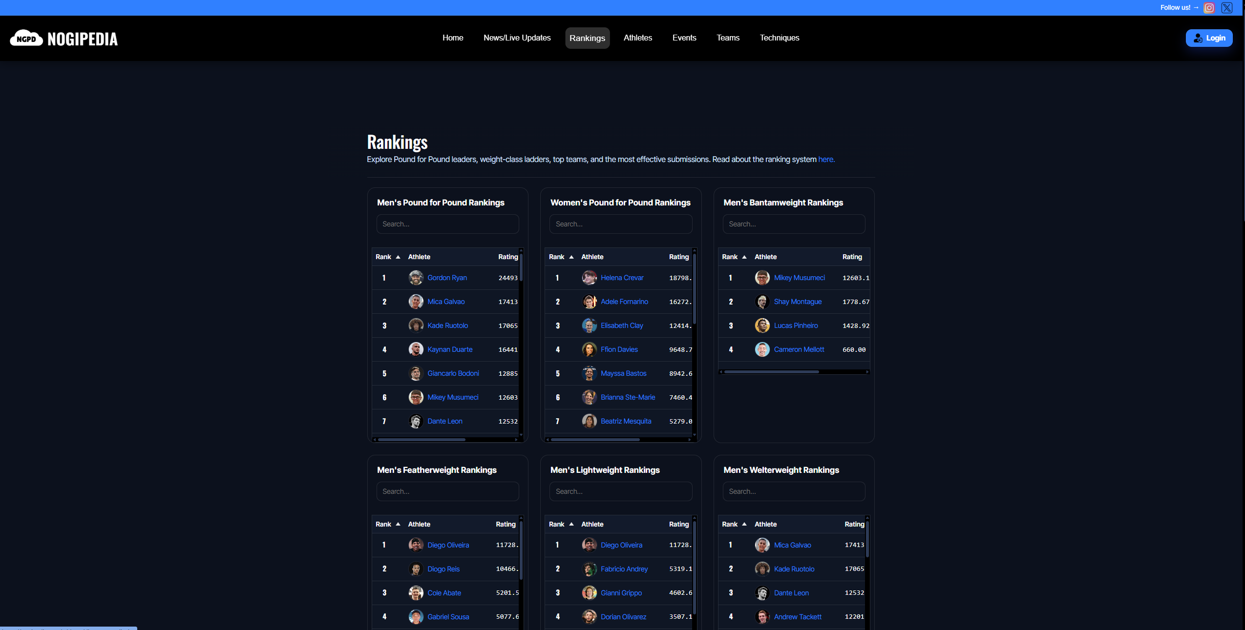 Stats-driven rankings, comprehensive profiles, live event updates - All in One Place