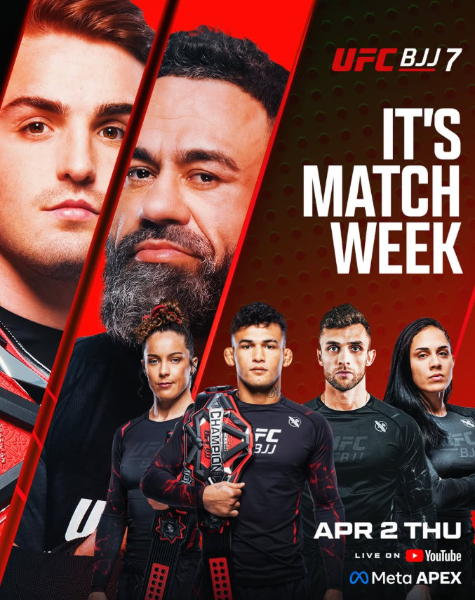 UFC BJJ 7 is a professional no-gi grappling event promoted by UFC BJJ and streamed live on the UFC YouTube channel. The event takes place at the UFC Apex in Las Vegas, Nevada on April 2, 2026, featuring two championship bouts and a full card of elite professional matchups.